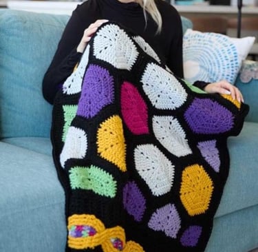 As I was researching for this project, I became fascinated by the building blocks of our genetic code. This curiosity led me to create something truly special—a warm and cosy lapghan inspired by DNA, crafted from a series of interconnected hexagons.
